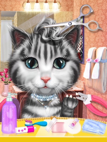 Bring each puppy and kitty into your makeover salon and let the job begin! Work on cleaning their fur and paws first, as pets like to roll in the mud, dont they? Scrub them clean with soap and suds, rinse, then blow dry. Take them into your dress salon for a lovely new nursery outfit to make them even happier. That should do the job! Give their lovely little paw a high five!
