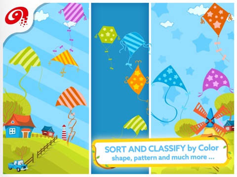 5-Kites: Classify kites (different colors&shapes) by PATTERN.