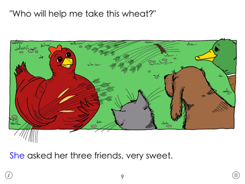 This app/book for children and classrooms is based on "The Little Red Hen", taken from CJs "Once Upon A Rhyme" recording. This animated "Sing n Read" storybook engages every child with hip music, clever lyrics, familiar stories, and pitch-perfect illustrations. Each word is highlighted in real time as CJ sings it. Youve never seen or heard traditional tales like this before!