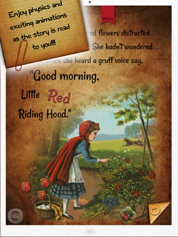 Run over the river and through the woods, to grandmother’s house we go! Little Red Riding Hood is an interactive and immersive app that brings to life the fairytale’s classic illustrations with the magic of modern technology. Enjoy Little Red Riding Hood and read it with your family as you would a moving picture book! It’s truly an engaging experience!