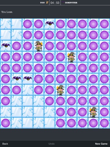 Last side to be able to make a move wins. Witches and bats alternate moving, trying to trap the others.