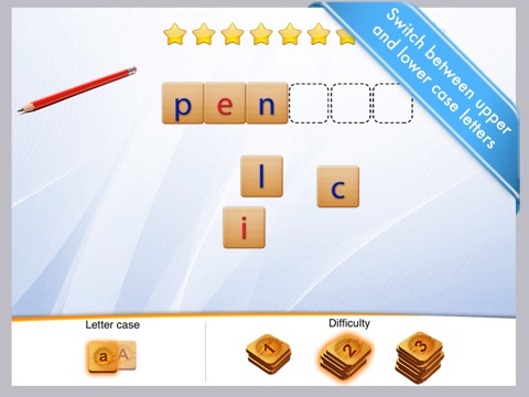 A charming six-year old pronounces all the completed words and the sounds as you press your chosen letters.