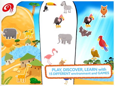 The game consists of 15 beautiful environments each focused on a set of basic concepts from the childs world such as shapes, colors, animals and objects.