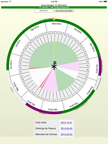 This application shows the current liturgical year of the Roman Catholic Church and important dates. Here you can see the liturgical seasons of Advent, Christmas, Lent, Easter and Ordinary Time placed on the Gregorian calendar. The duration of the liturgical times is displayed and a link for the corresponding Holy Mass readings is also included.