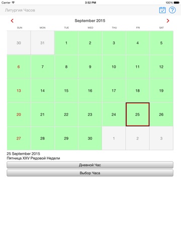 Также в приложение включен литургический календарь с возможностью выбора произвольной даты для чтения литургии часов.