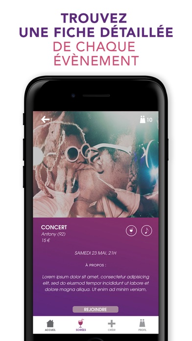 LIVE cest lapplication qui va vous permettre de stimuler votre vie sociale en vous proposant de créer vos évènements et de les proposer à un maximum de personnes. Facile daccès, grâce à sa connexion via Facebook et son design épuré, lapplication vous donne la possibilité de trouver des évènements de toute sorte à tout moment.