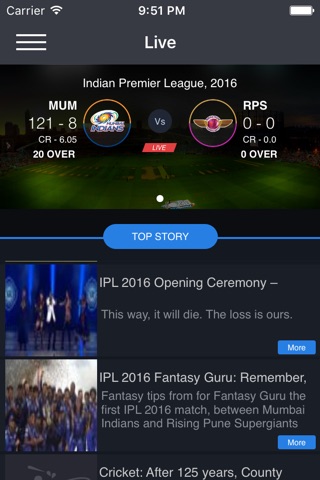 - Results of recent matches - in case you want to look at the scorecard of a game that you recently missed.