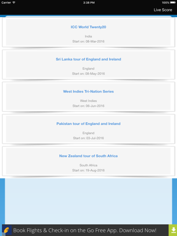Get Live cricket scores around the world just in a single tap, updated in real-time, ball-by-ball coverage. Ongoing series, past matches, live matches, upcoming matches and fixture details everything.