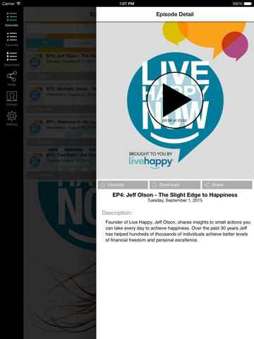 The editors of Live Happy magazine bring you best-selling authors and happiness gurus that share their knowledge on topics such as wellness, gratitude, well-being and mindfulness. Interviews are conducted with people like Shawn Achor, Michelle Gielan, Dr. Christine Carter, Margaret Greenberg, Dr. Drew Ramsey, Gretchen Rubin, Barbara Fredrickson, Tal Ben-Shahar, Deepak Chopra, Sonja Lyubomirsky, Stacy Kaiser, Darin McMahon, Michelle McQuaid, Fred Luskin, Shani Robins, Kristin Neff, Dr. Rick Hanson, and many more.