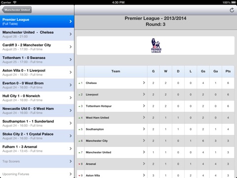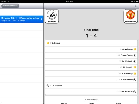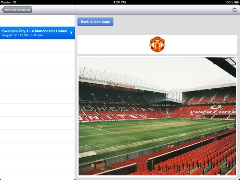 With this app you can also check the stats for all the other teams in the UK Premier Football League (Manchester City, Chelsea, Liverpool, Everton, Tottenham, Arsenal, Stoke City etc.)
