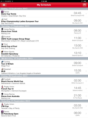 - Event start times now also included along with the broadcast time.