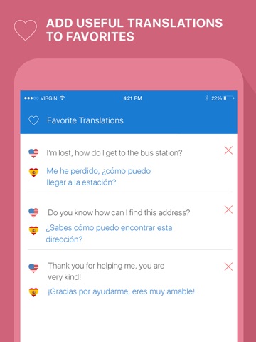 - Keep your favourite phrases at your hand, always ready for a live conversation;
