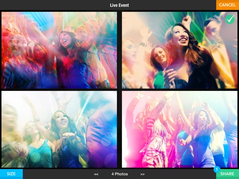 LiveBooth Lite has an intuitive user interface for guests to scroll through thumbnails or high resolution photos, select one or multiple and share via Facebook, email, Twitter or print via AirPrint.