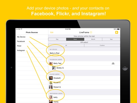 - Your personal Facebook, Flickr (>iOS 9.3.5), Instagram, Google Photos, Dropbox accounts.
