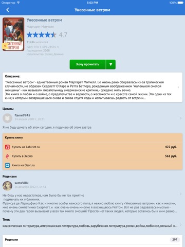 Обновляю свой отзыв. После достаточно долгого использования приложения сделала свои выводы. 1. Неполное отображение рецензий. 2. Очень раздражающая задержка при открытии "хочу прочитать", "уже прочитал" и т.д. 3. Невозможно перейти по ссылке в посте. Этой возможности просто нет, нельзя даже скопировать текст, чтобы открыть в браузере. 4. Зачем под каждой цитатой есть ссылка "продолжить чтение", даже если цитата состоит из трех слов? 5. Когда выбираю пункт "читаю сейчас", книга оказывается в "я прочитал". 6. Нельзя указать точную дату прочтения - дд.мм.гг. Есть только мм.гг. Хотя в полноценной версии эта возможность имеется. Я пользуюсь далеко не всеми возможностями livelib, в основном добавляю книги, читаю и добавляю рецензии и цитаты, но даже этими функциями я не могу нормально пользоваться. Исправляйтесь, пожалуйста, у приложения есть потенциал. Оформление очень хорошее.