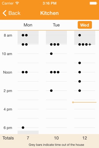 + view visual dashboard with simple face tiles to share daily living patterns for eating and drinking, medication, and other important health indicators