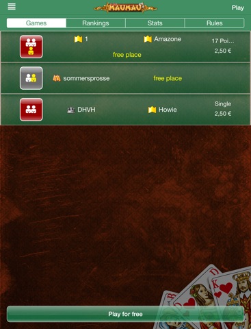 - In LiveMauMau you can open your gametable by yourself and choose the stake.