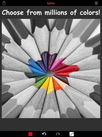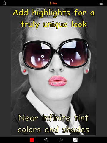 Livens intuitive interface allows you to quickly and easily give your photos the look they need to stand out for business or social networks such as Instagram, Facebook and Twitter, getting you more customers and followers. Simply load a photo and it becomes grayscale instantly - then tap and drag your finger to colorize and then share your creation.