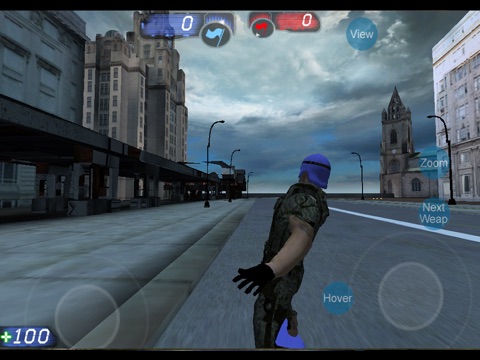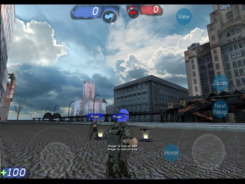 Capture the flag, 6 vs 6, Red team (Bots) vs Blue Team (Bots) with 3D graphics. 10 acres play area.