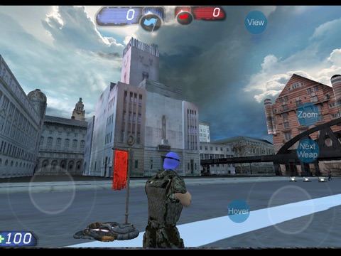 Team based continuous play, Capture the flag and Team deathmatch Game-types, with hover vehicles in Dockfront area of Liverpool.