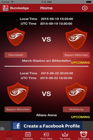 - HOME: Home page contains upcoming two matches schedule of your favorite team. You will redirect automatically to live match details page when your favorite team is playing. Match time in Local and UTC time.