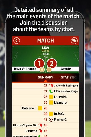 - A chat room for each match: discuss about the match, the teams or make your prediction.