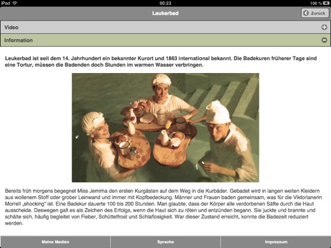 At six locations across Leuk, Leukerbad, Gemmi, Schwarenbach, Sunnbüel and Kandersteg, visitors can now take a trip back to 1863 and join British tourist Miss Jemima on her travels through Switzerland with this new video guide. Feisty 31-year-old Jemima Morrell participated in the first group tour to Switzerland organised by the British travel pioneer Thomas Cook. The video guide “Rendezvous with an Englishwoman”, Switzerland’s first period drama especially for tourists, aims to entertain both domestic and foreign visitors with a slice of Swiss history. The guide is available in English, German and French.