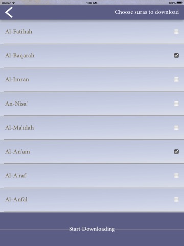 إمكانية تحميل سورة واحدة فقط او عدة سور