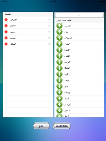 • Ability to arrange Suras under "Favorite List" so easily