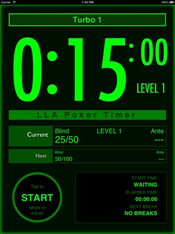 LLA Poker Timer is a specialised timer for managing poker tournaments. This is a universal app that will run on iPhones and iPads and will format to whatever orientation the device is in.
