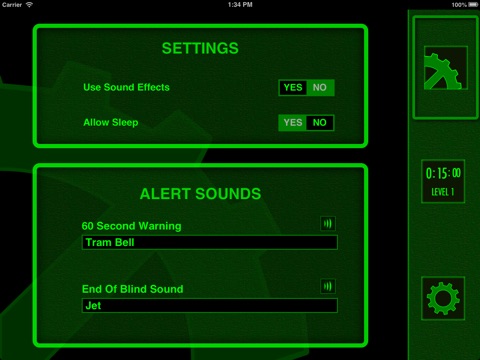 -Sound effects are included to sound off at the 1 minute level to warn of an impending blind level change and at the 10 second level to signify a new blind level.