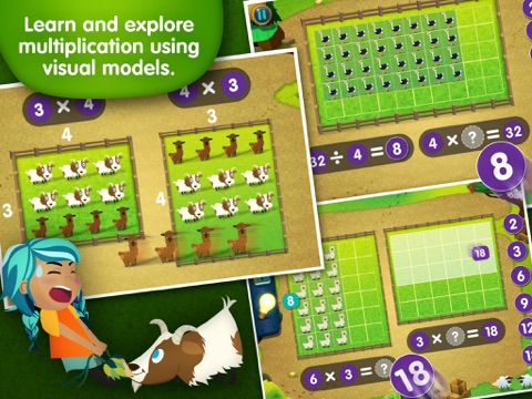 Kids build number fluency, develop strategies for multiplication, and learn properties of operations as they sort rowdy animals into arrays of different sizes.