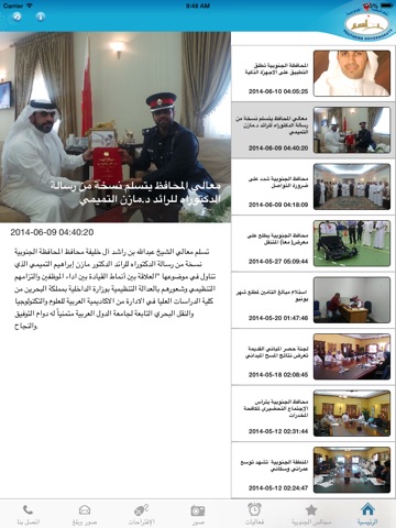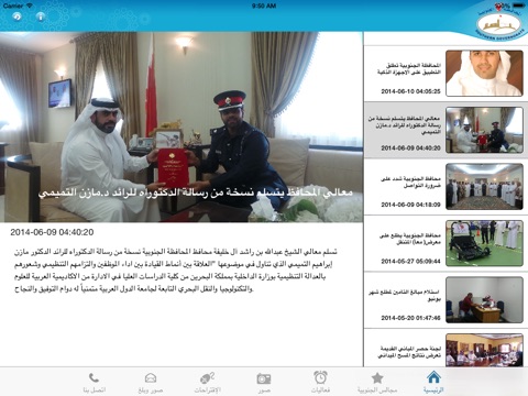 يتضمن البرنامج آخر أخبار المحافظة الجنوبية، صور و فعاليات المحافظة ، المجالس الموجودة في المحافظة بترتيب يومي ، بالإضافة لمواقع المجالس، و ميزة صور بلغ التي يمكنك من خلالها التواصل مع المحافظة. و معلومات عن المحافظة و نبذة عن المحافظة.