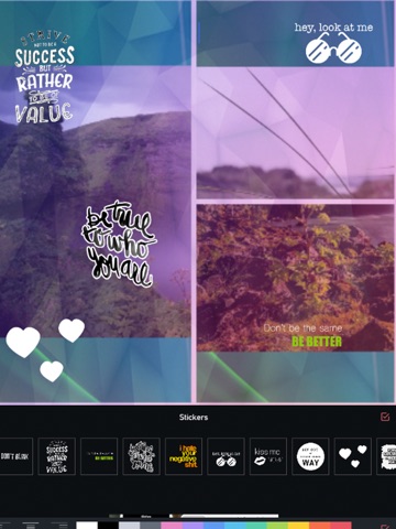تطبيق للتعديل على الصور، خصائصه: الكتابة على الصور بخطوط عربية، تعديل الألوان والمؤثرات على الصور، تقسيم الصورة الى عدة صور ورفعها على الشبكات الاجتماعية، إطارات الصور