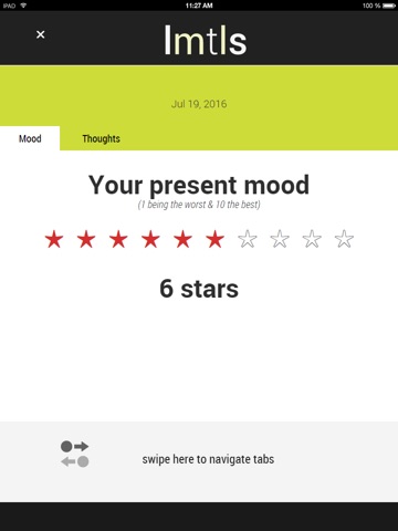 Users observe their daily tracks in chart form; providing a snapshot of the trajectory of their life or therapeutic interventions. These can be shared with therapists, used to inform future therapy exercise plans, mood management or other life-enhancing interventions.