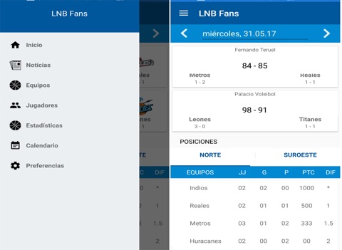 LNB FANS presenta las siguientes opciones: