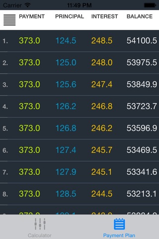 The graph provides a visual representation of the cost of the loan. Loan overview helps you to make a more informed decision, compute principal balances, create a payment plan and see how much interest you will end up paying for a loan. Whether you are buying a car or a property, this app helps you work out the costs quick and easy.