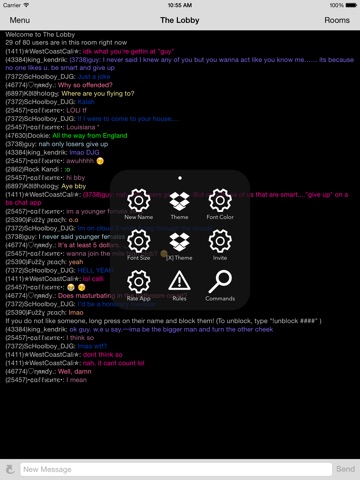 The Lobby is a FREE, anonymous, cross platform app for all users to have access to the best live chatrooms in the Play Store. We have great moderators (Identified by blue numbers next to their names) and administrators(Identified by colored numbers next to their name) to help you whenever youre in need of assistance. We are a rapidly growing community with active users and different rooms based on what you might be looking for, so its almost impossible to not meet new people every day! With many public and private rooms to choose from, youll fit in :)