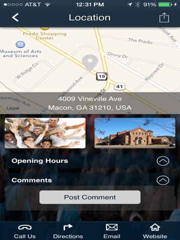 - Location helps app users contact the Local Church Connection via: Call Us, Directions, Email, or Website