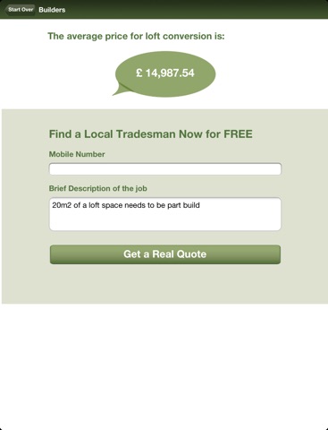 - Go on to submit your enquiry to real local tradesmen for a real quote!