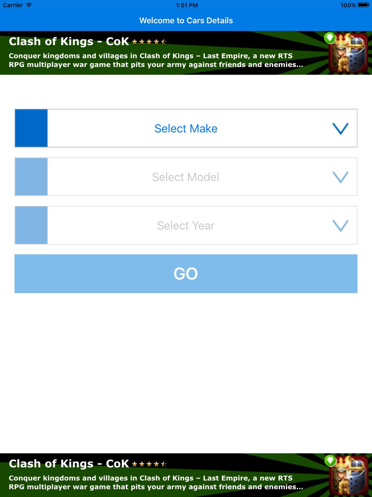 You have to just select select the make by which the car is made, then select the model of the car and finally select the year. You will get the sampling data of the selected car.