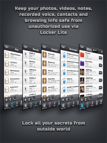 Your Photos, Videos, Notes, Recorded Voice, Contacts and Bookmarks, All are password protected.