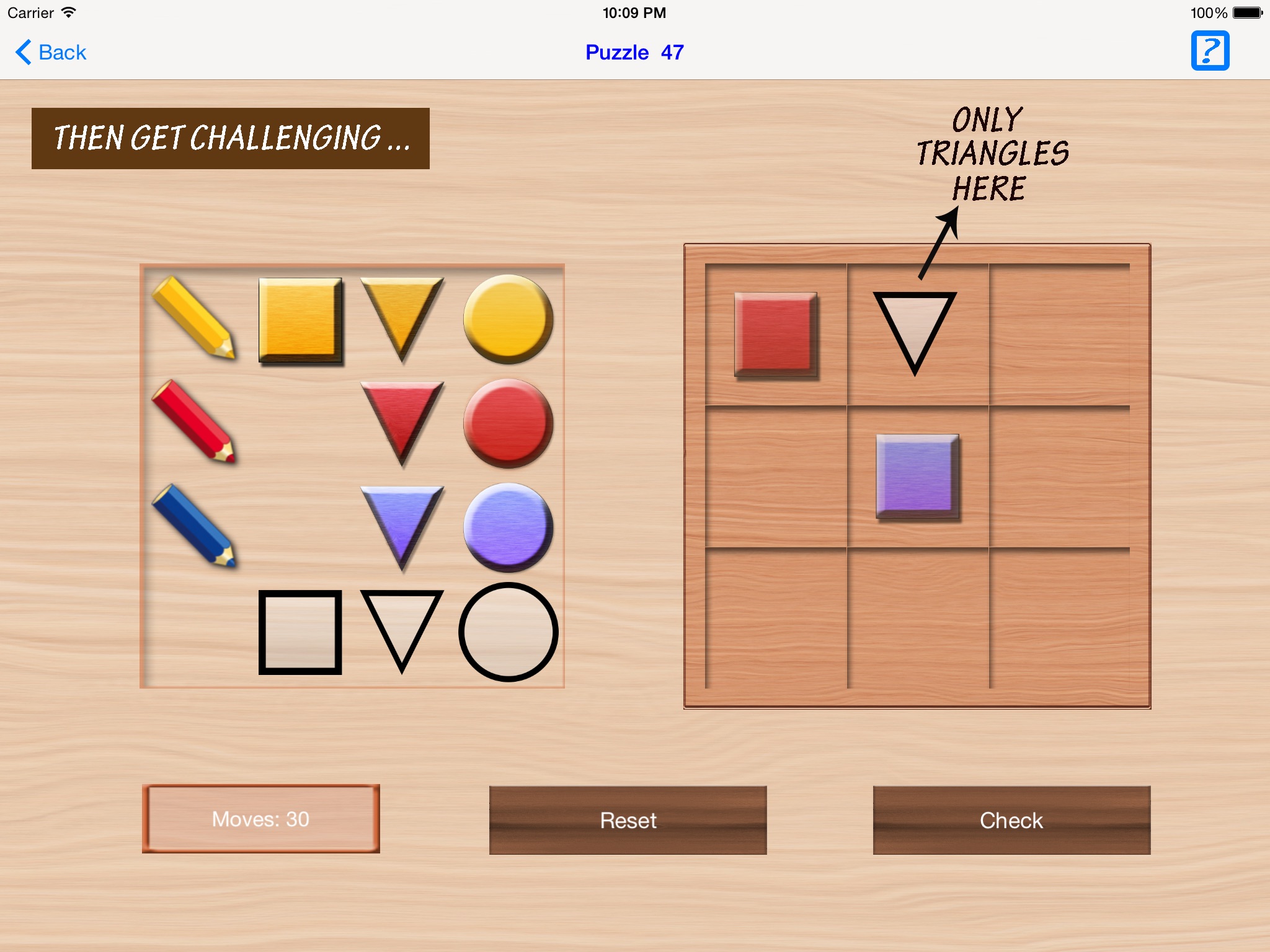 The goal of the game is simple, to fill the grid with shapes, without repeating a shape in a row or column (yes, like sudoku !). But wait - theres more ! You have to manage the colors and the shapes simultaneously - adding a whole new dimension to sudoku.