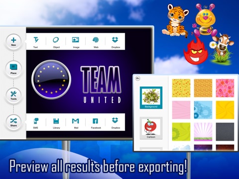 -Share it via email, SMS, Facebook Dropbox or just save it in your native library!