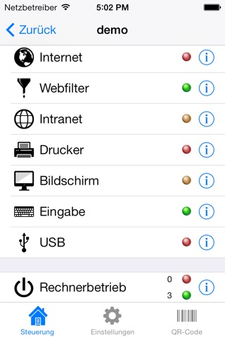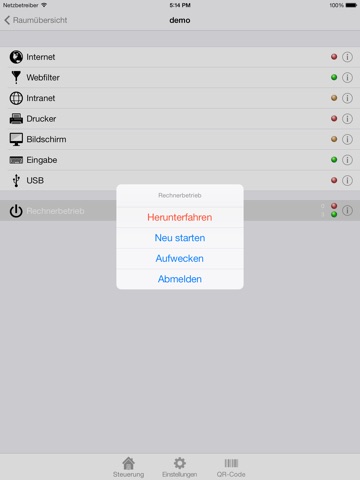 * Rechnerbetriebsteuerung: Herunterfahren, Neustarten, Abmelden und Aufwecken