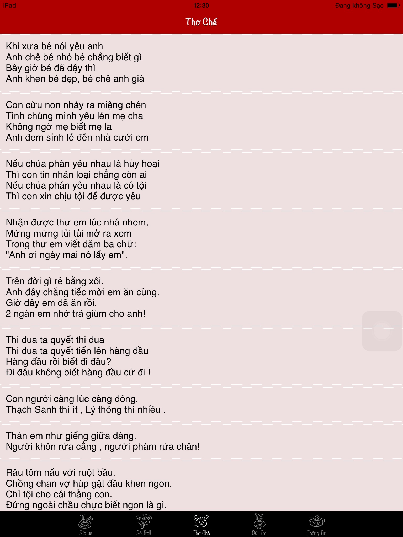 + Ngoài ra, ứng dụng còn tổng hợp hơn 1000 câu thơ chế, thơ bút tre hay...