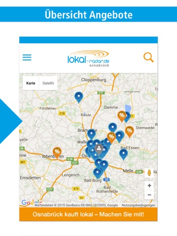 Neben der Ansicht verschiedener Firmenprofile und lokaler Angebote bietet die lokal-radar-App auch eine Routenplanung zu den Unternehmen Osnabrücks. Ebenfalls ist eine einfache Möglichkeit der Kontaktaufnahme integriert, mit einem Klick können Sie anrufen oder eine Mail schreiben. Mit lokal-radar verpassen Sie kein Angebot in Ihrer Nachbarschaft mehr!