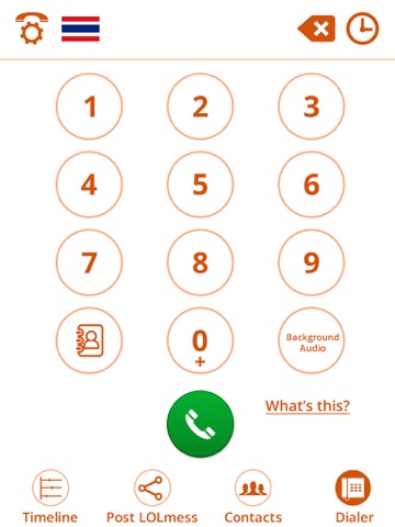 Dialler: Call mobile and landlines at a very low rate worldwide. Lolmess gives you 24 credits for free! for first time signUp. Add one of 75 different background sounds in the call of your choice and pretend to be somewhere else, on the formula one track, bus, train, tennis court and so on. Record and share for free! This can be very funny as useful.