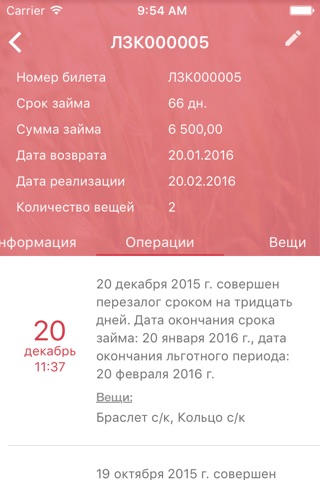 Приложение не даст вам упустить из внимания все важное по вашим залогам: сроках возврата займа или о просрочке займа. Здесь же вы можете посмотреть полную информацию о ваших действующих займах, прошедших и предстоящих событиях по залогу.
