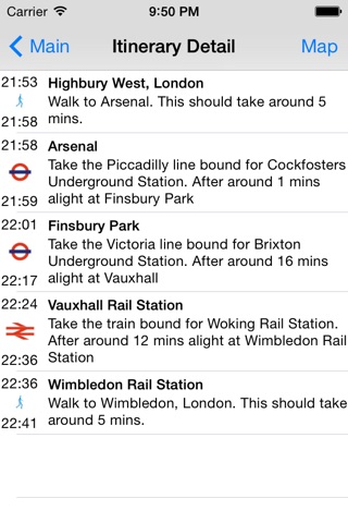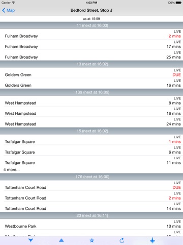 ► Live departures boards for bus, tube, train.